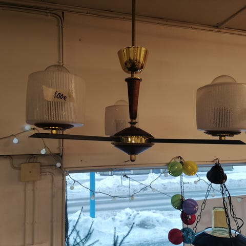 Vanha kattovalaisin, siistissä kunnossa. Toimivuudesta ei tietoa, ei ole testattu. Mitat: 18cm korkeus, sekä halkaisija.