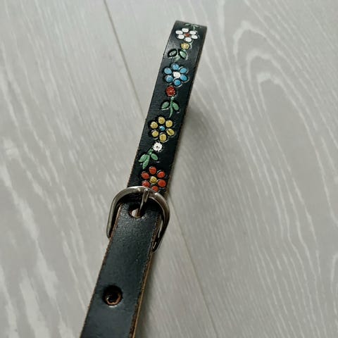 Valkoinen lettimallinen nahkavyö kultaisella metallisoljella. Vyön pituus 90cm. Tämä peritty isoäidiltä, aitoa vintagea siis 😊 kunto silti loistava, laadukas kappale. Sijainti Turun keskustassa, postitus onnistuu tietty myös. Tarjoa sulle sopivaa hintaa!