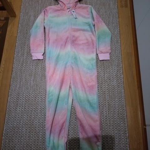 Pehmeä oloasu koko 134/140. Pieniä tähtikuvioita, väri v.sininen
