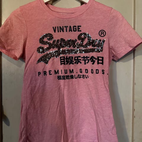 Hyväkuntoinen aito Superdry t-paita vintage style t-paita. Koko XS. T-paita on vintage tyylinen, paidassa on tarkoituksella teksti hieman halkeillun näköistä, näkyy kuvassa. Niskalappu leikattu pois. Vähänkäytetty, ei jälkiä.