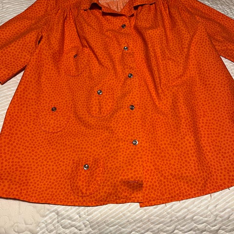 Käytetty Marimekko paita oranssissa värissä. Koko on L.