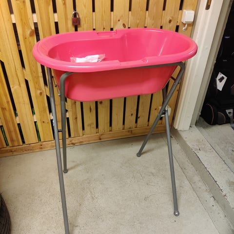 Myydään yhden lapsen käytössä ollut pinkki kylpyamme. Siisti ja ehjä, mutta käytönjälkeä ja naarmua näkyvissä. Pituus 83cm, leveys 48cm, korkeus 29cm.