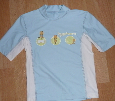 Siniharmaat Hyphenin shortsit, kokomerkintä 104/110 cm. Hyphenin tuotteissa on UV80-suoja. Nimikoitu, mutta muuten en löytänyt mitään vikaa. Käytetty ehkä paristi huonojen viime kesän kelejen takia. Hinta uutena ollut muistaakseni 40-50 euroa.