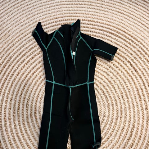 Vain muutaman kerran käytetty märkäpuku. Ehjä ja moitteettomassa kunnossa. Hihat ohutta uimapukukangasta. Haarasta kauluksen yläosaan (venyttämättä kangasta) 49cm.