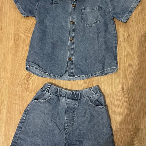 Puuvillainen shortsisetti, missä punainen autokuvioinen t-paita sekä collegekankaiset turkoosit shortsit missä auton kuva lahkeensuussa. Kokomerkintä molemmissa 120 cm. Laput kiinni, tuliterä setti.