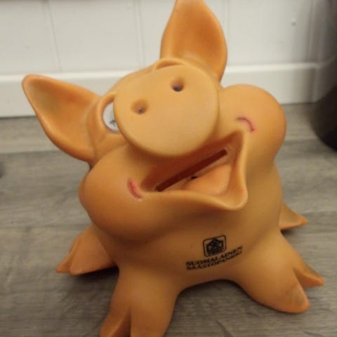 Postipankki säästöpossut, hyvin pientä kulumaa.