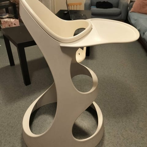 Puinen syöttötuoli, ostettu aikonaan verkkokaupasta.