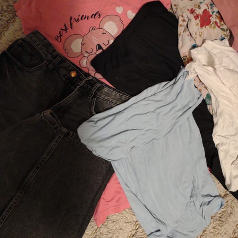 Myydään lasten vaatepaketti, topit koko xxs ja legginssi farkut 140, 146