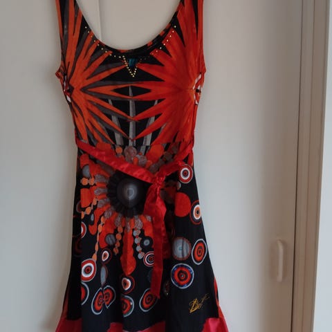Myydään lähes käyttämätön Desigualin mekko. Koko L (vastaa M-kokoa), värit musta, punainen, vihreä, liila. Kauniit kuviot edessä, takaa musta. Mekkoa voi pitää satiinivyön kanssa tai ilman. Nouto Joensuusta, tai voin postittaa ostajan maksaessa postikulut.