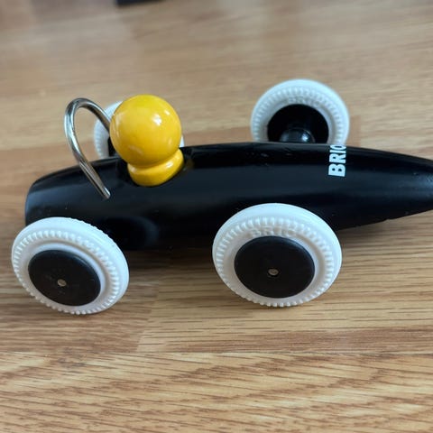 Joitain käytönjälkiä havaittavissa. Toimii kuitenkin moitteetta ja on edelleen ehjä. Hyvä taaperoikäiselle leikkeihin.