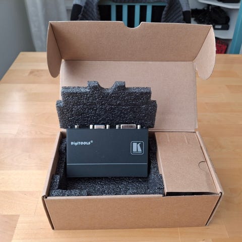 Sisältää VP‑41-kytkimen, VGA-kaapeleita löytyy hyvin erikseen.