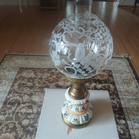 Vanha öljyvalaisin, runko messinkiä ja lasikupu uusittu. Sähköt uusittu.