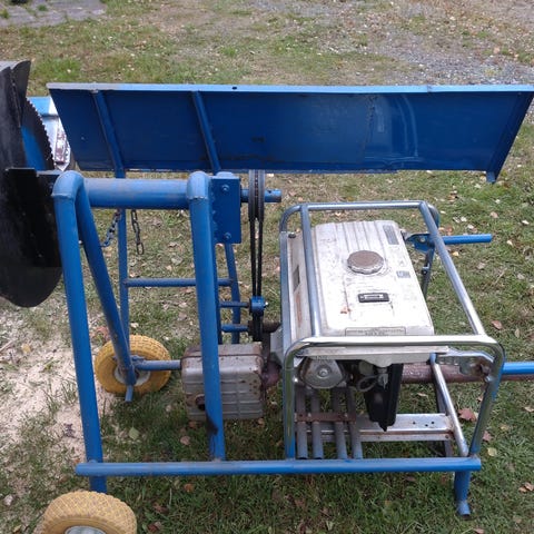 Voimavirta sähkömoottorilla toimiva klapisirkkeli. Traktorin nostolaite sovitteinen. Hihnat kaipaa uusimista, muuten kunnossa. Nosto kyytiin onnistuu vain traktorin nostolaitteella. Nouto Jämsä Alhojärvi.