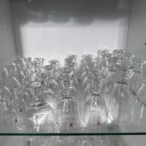 Myydään kuvan Iittalan lasitavaraa. Tapio Wirkkala kuohuviinilasit 4 kpl. Tapio Wirkkala snapsilasit 2 kpl. Iittala Wellamo snapsilasit 2kpl. Tapio Wirkkala Iittala Aslak liköörilasit 4kpl. Ja munakupit ja tossut kaikki Iittalaa. Hintaa voi tarjota jos joku noista kiinnostaa. Voi myös tarjoa kaikista jotain. Kuohuviinilasit myyty.