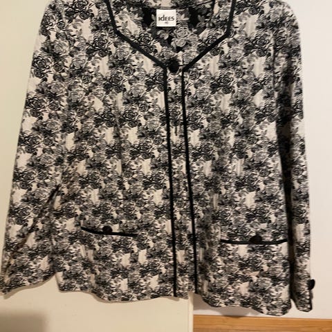 Musta-ruskea-valkoinen jakku koko 38 ( saattaa vastata kokoja 40-42), jossa taskut