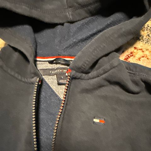 Tommy Hilfiger huppari, pieni pintahaitu, kokomerkintä 4 ja meillä ollut 4vuotiaalla käytössä. Siisti käyttöön vielä seuraavalle.