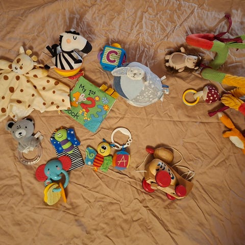 Vauvan helistimelelut ja ankkasetti, joka pitää kvaakkuvaa ääntä. Ankkasetissä on köysi, jota vauva voi käyttää kävelemiseen. Muut lelut pitävät ääntä liikuteltaessa. Siellä on myös puinen keinulauta eläimillä. Kaikki lelut ovat vauvaturvallisia. Voidaan myydä yhdessä tai erikseen. Hinta koskee kaikkia leluja. Toimitamme Tampereella ja Valkeakoskella sekä niiden lähialueilla.