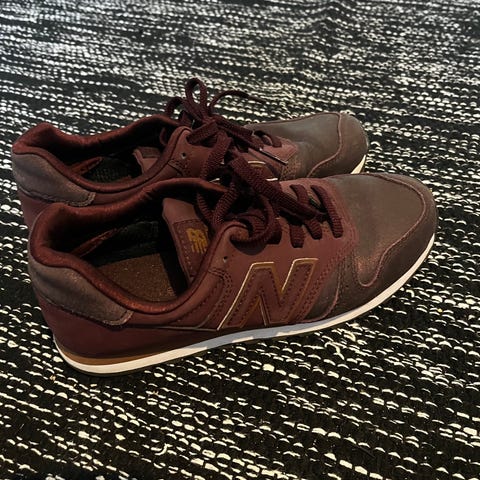 Myydään pari kertaa käytetyt mustat naisten New Balance 373 -tennarit. Kengän sivussa oleva logo ja osa kantapäästä ovat vaaleanpunaiset.