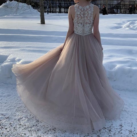 Itse olen 170cm ja tanssin air forceilla, mukaan saa myös jatkopalan jolloin mekkoa saa pidennettyä nätisti tarpeen mukaan.