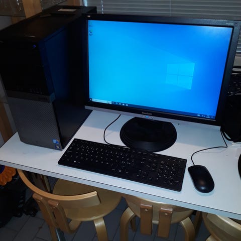 Dell Optiplex 790 -pöytätietokone: Windows 10 Pro, 8 GB RAM, i5-2400 CPU, kovalevy 222 + 10 GB (kaksi partitiota), DVD/CD -asema sekä Viewsonic VG1930wm 15" näyttö, hp-näppäimistö, Logitech -hiiri, tp-link 150 Mbps wifi -USB-tikku. Toimiva. Hp. yhteensä kaikki.