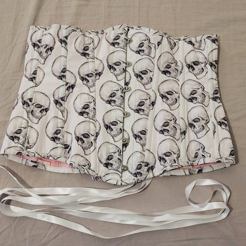 Valkoinen corset storyn korsetti kokoa 42, eli iso ehkä noin XXL.