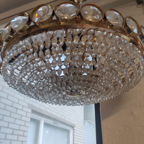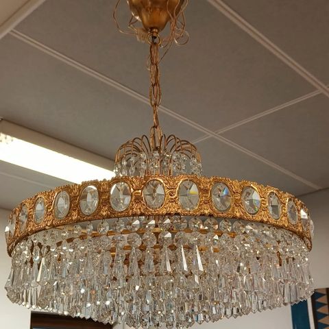 Hieno ja haluttu aito 5 tasoinen turun kristalli kruunu.kullattu halkaisija 47cm.näitä harvoin tarjolla.