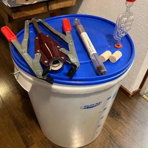30 litran käymisastia. Kaikenlaisia viinintekemiseen ja pullotukseen öiitttviä tykötarpeita.