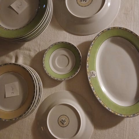 Astiasto neljälle hengelle + sokerikko ja kermakko.