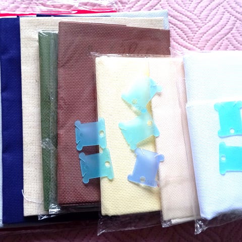 Ristipistokassi AMA 214. Mukana langat ja neula. Paketti on avattu.