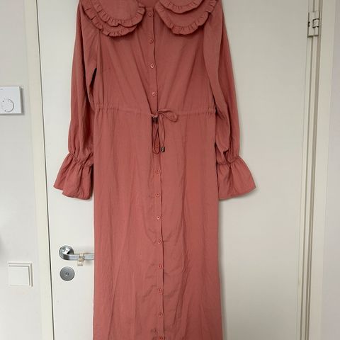 Pitkä helma ja pitkähihainen mekko. Takana vetoketju. Halkiot sivuissa. K-k 52cm ja kaula-aukosta helmaan 107cm. TomTailor merkkinen. Pari kertaa ollut käytössä. Mukava päällä. Arkeen ja juhlaan. Itselle jäänyt pieneksi. Sopii kesämekkona tai syysmekkona.