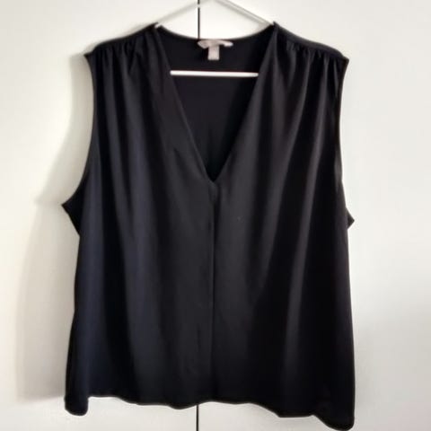 Naisten musta pusero koossa XL. Väljä, hihaton malli, jossa pyöreä pääntie. Edessä taskut ja kaksiosainen ilme eri kangaspinnoilla. Sopii arki- ja vapaa-ajan käyttöön.