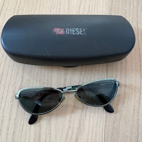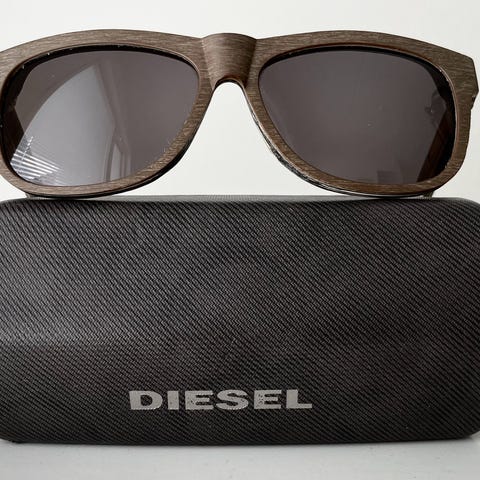 Lähes käyttämättömät Dieselin aurinkolasit kotelossa.