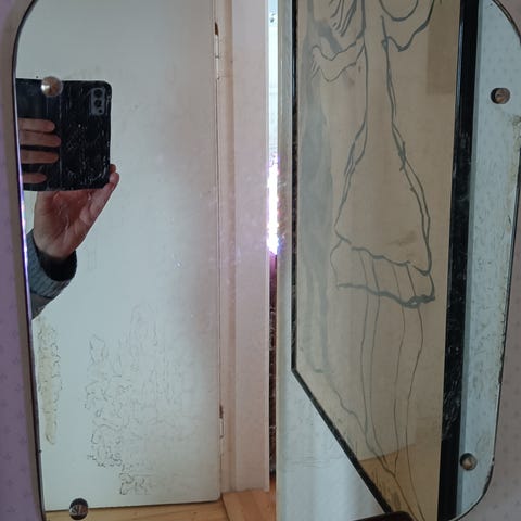 Peililasissa iän mukana tuomaa luonnetta/patinaa