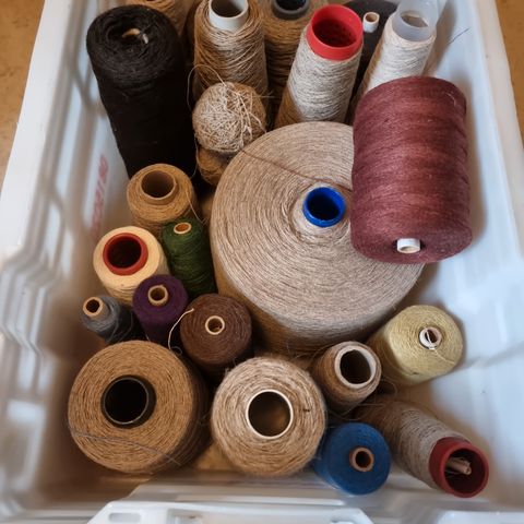 Käsinkudottua pellavakangasta yhteensä 16m. Sininen lanka kulkee mukana koko matkan. Pellava+sininen osuus 11 m ja valkoisella langalla kudottua 5m (viimeinen kuva, huonosti sai kuvattua). Leveys 64cm. Myyn koko rullan 350€ tai värit erikseen 30€/m. Sinistä voin pätkiäkin pariin palaan.
