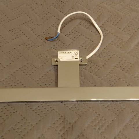 Pistokkeella ja 2 led lamppua. Korkeus 59 Cm, leveys 46cm ja syvyys 15 cm