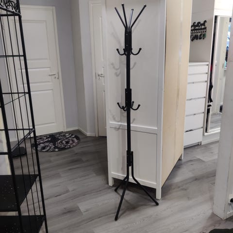 Sievä maalaisromanttinen / vintage -henkinen, rouhea ja persoonallinen seinänaulakko. Naulakon tausta on hieman kupera, mutta se ei ole käyttöä häirinnyt millään tavalla. Koko 41 cm X reilu 18 cm. Koristeena pitsiä ja puunappeja.