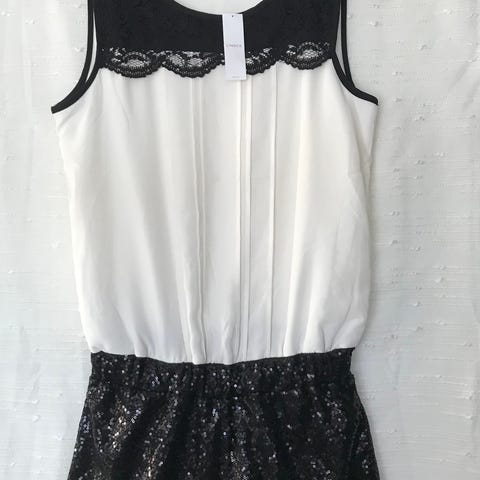 Myydään uudenveroinen musta / kulta juhlapuku, velour jumpsuit. Koko 14, vastaa 158-164.