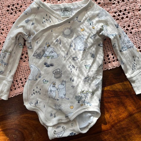 Muumi lasten body ja potkupuku, unisex, koko 62. Sopii erinomaisesti vauvoille mukavan istuvuuden ja pehmeän materiaalin ansiosta.