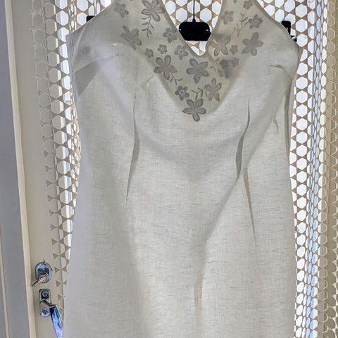 Kerran pidetty ja pesty uudenveroinen 100 % pellavamekko. Kainalo-kainalo 62 cm, pituus 90 cm, pituus kainalosta 66 cm. Ompelijalla helma lyhennetty. Myyn tarpeettomana, koska minulla on toinen samanlainen. Ovh 89,90.
