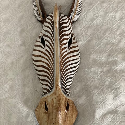 Puinen naamio ja aterimet, kunto on hyvä.