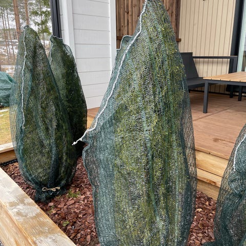 Myydään tuijaverkkoja, joilla olemme suojanneet n. 15 metriä pitkää tuija-aitaa. Suojaavat hyvin esimerkiksi eläimiltä ja talvivaurioilta. Verkot ovat käytettyjä mutta siistissä ja käyttökelpoisessa kunnossa.