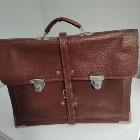 Vanha nahkasalkku, pilottisalkku. Toisen puolen numerolukkoa ei taida toimia, muuten suhteellisen siisti.