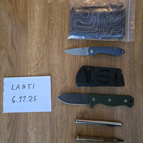 Kääntöveitsiä sekä edc retkeilytavaraa