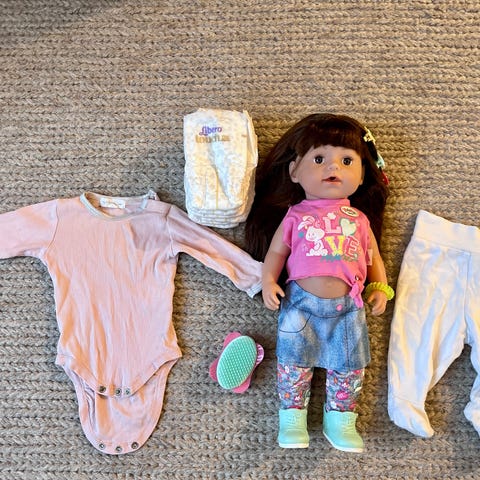 Myydään siisti Baby Born -nukke, talvivaatteet ja tarvikkeita.
