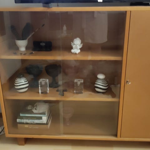 Asko Aspö liukuovi-vitriinikaappi 33x87x163 uudenveroinen