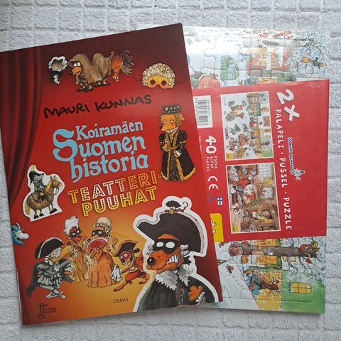 Myydään 3 melkein käyttämätöntä, mutta tyhjää ja puhdasta vihkoa, 2 uudenveroista glitteriteippiä, 1 avaamaton eläin/kesäinen tarra-arkki sekä mini Mauri Kunnas -palapeli😊