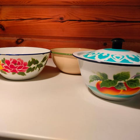 Punakeltaiset emalikannet