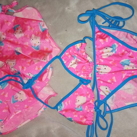 Uuden veroinen sekä hyvässä kunnossa oleva Hello Kitty uimapuku koossa 104/110