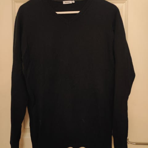 Kokomerkintä L, mutta pientä kokoa. Yleisilmeeltä muuten ihan siisti, mutta hihansuissa ja helmassa selvää kulumaa, katso kuva. Siksi edullisesti eteenpäin.