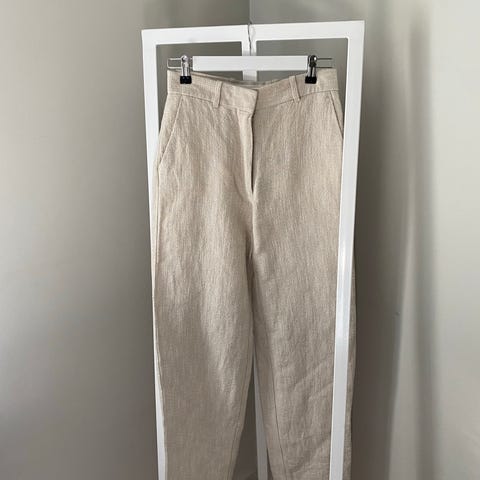 Laadukkaat, hyvin vähän käytetyt Dagmarin korkeavyötäröiset, leveälahkeiset housut. Ovat rypistyneet säilytyksessä, mutta erittäin hyvässä kunnossa.